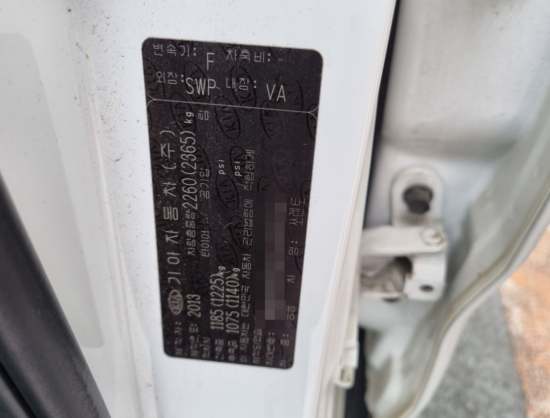 적정 타이어 공기압은 운전석 문을 열면 차체에 붙어 있다고 합니다. 2013년식 뉴쏘렌토R 입니다.