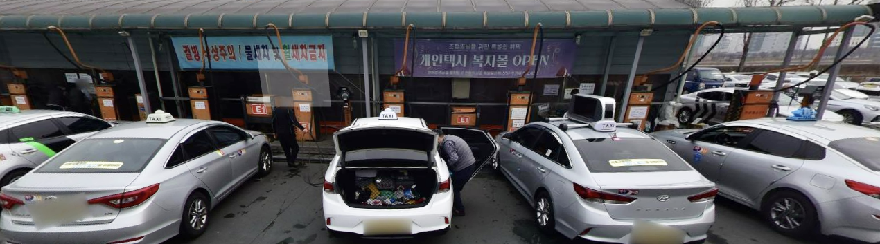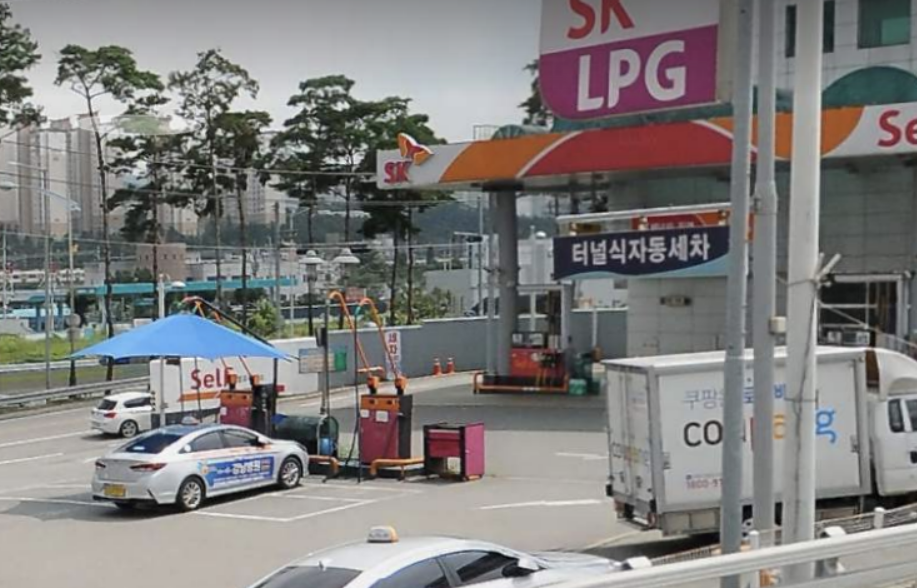 차량을 자동에어 주입기 근처에 주차합니다. 호스 길이가 충분하니 적당히 주차하면 됩니다.