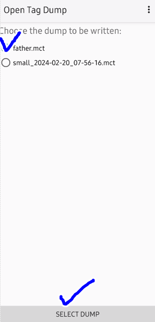 MCT 어플을 실행하고 기본 화면에서 "READ TAG" 선택