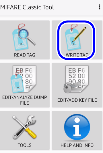MCT 기본 화면에서 "WRITE TAG"를 선택해 줍니다.