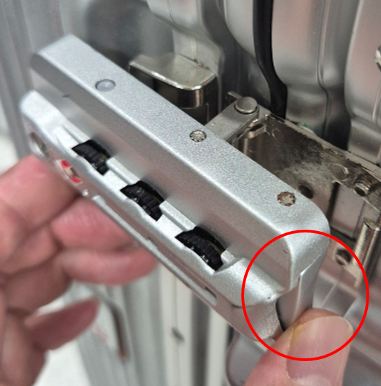 1. 잠금장치 옆면에 쌀알 크기의 리셋 버튼을 얇은 핀으로 누름, "딸깍" 하고 들어감 (비밀번호 재설정 상태)